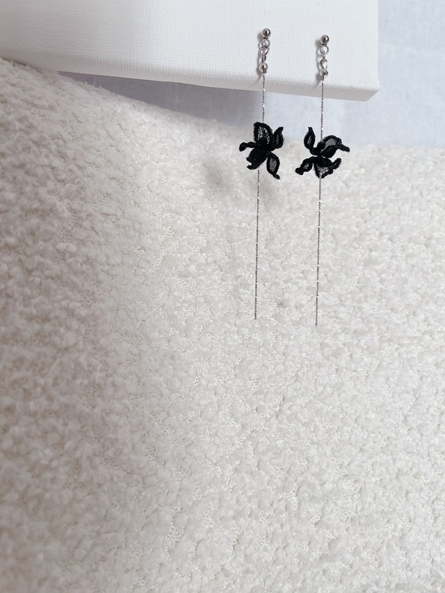 broderie volant fleur ピアス/イヤリング(black)