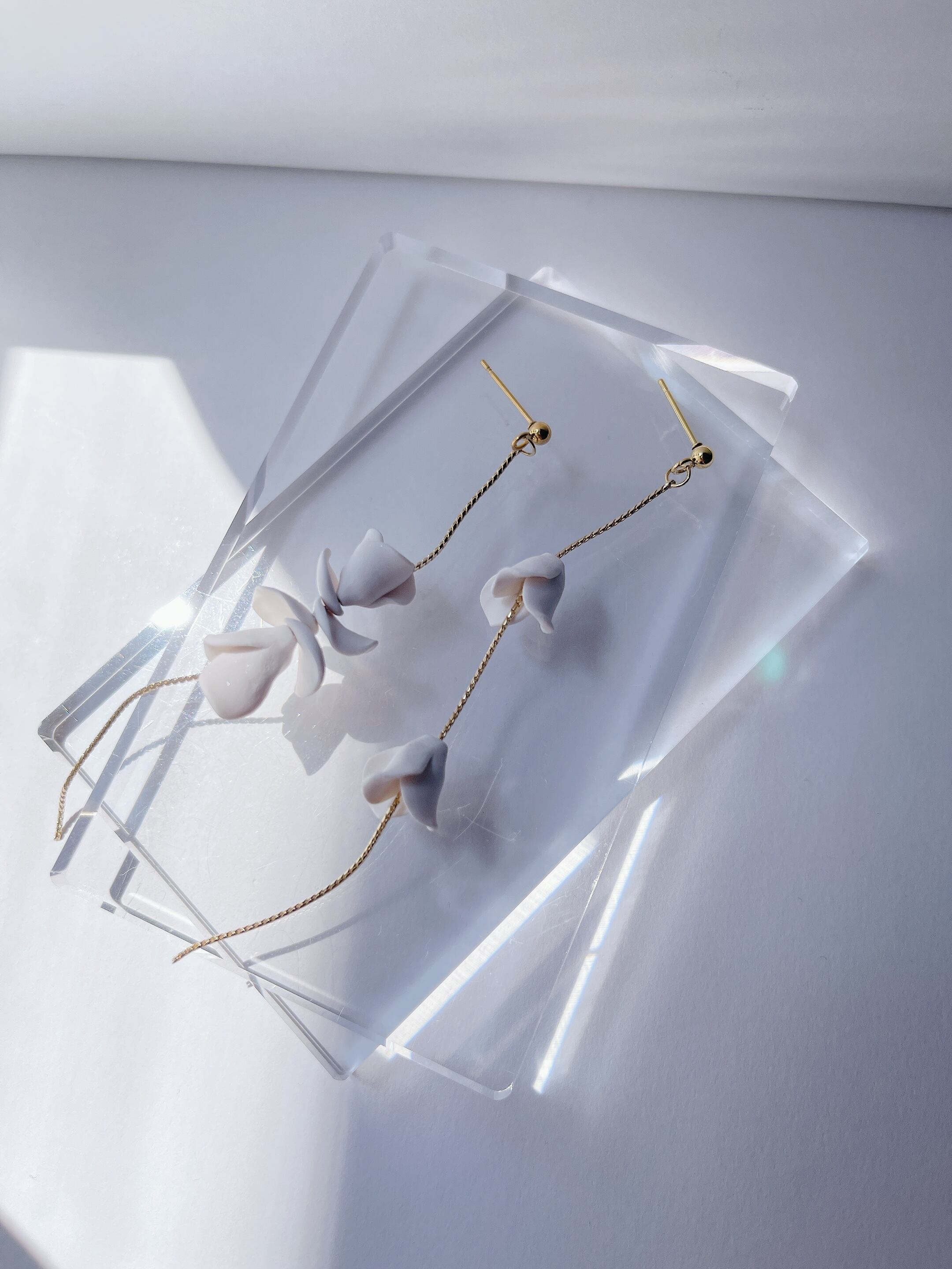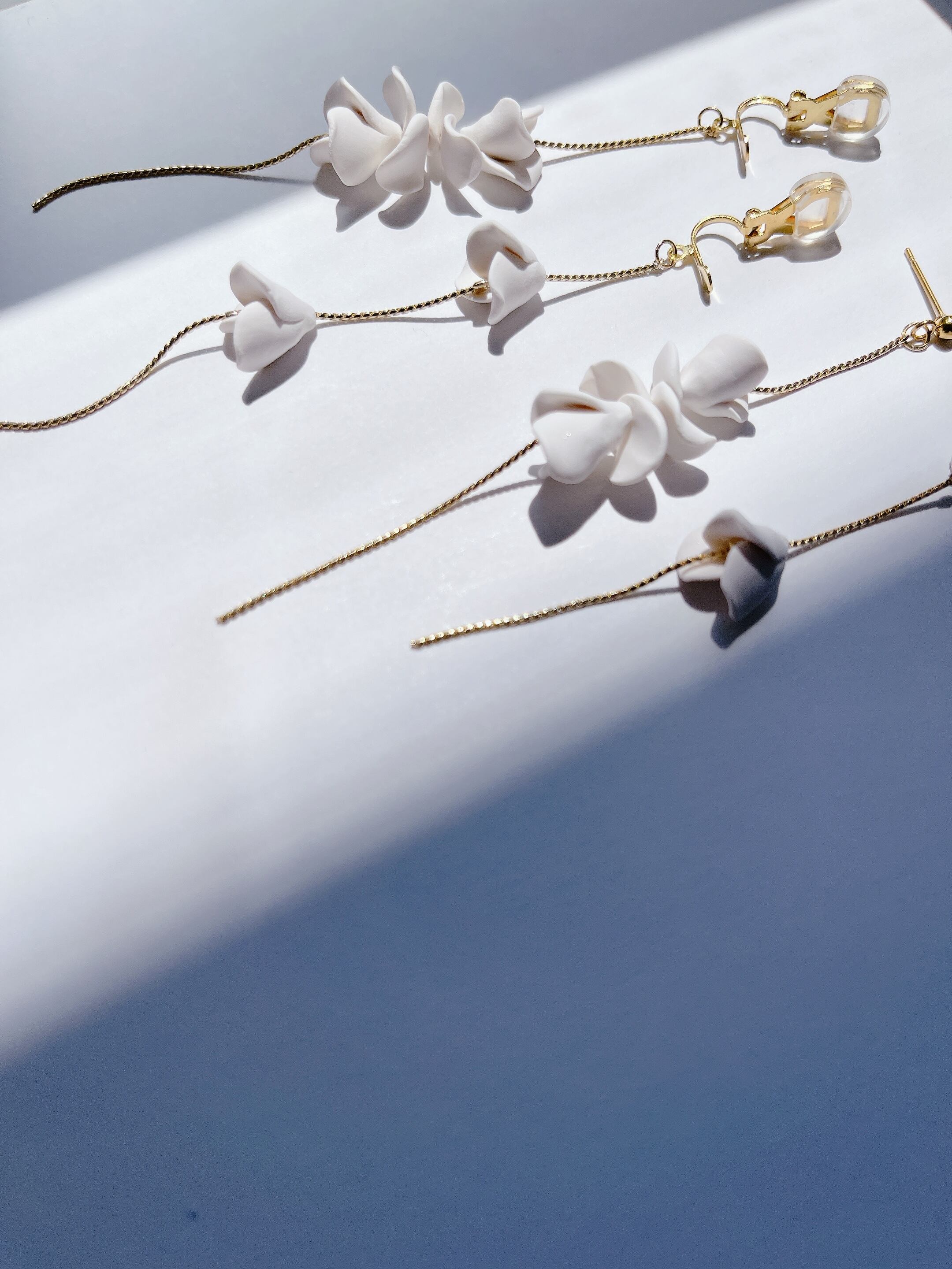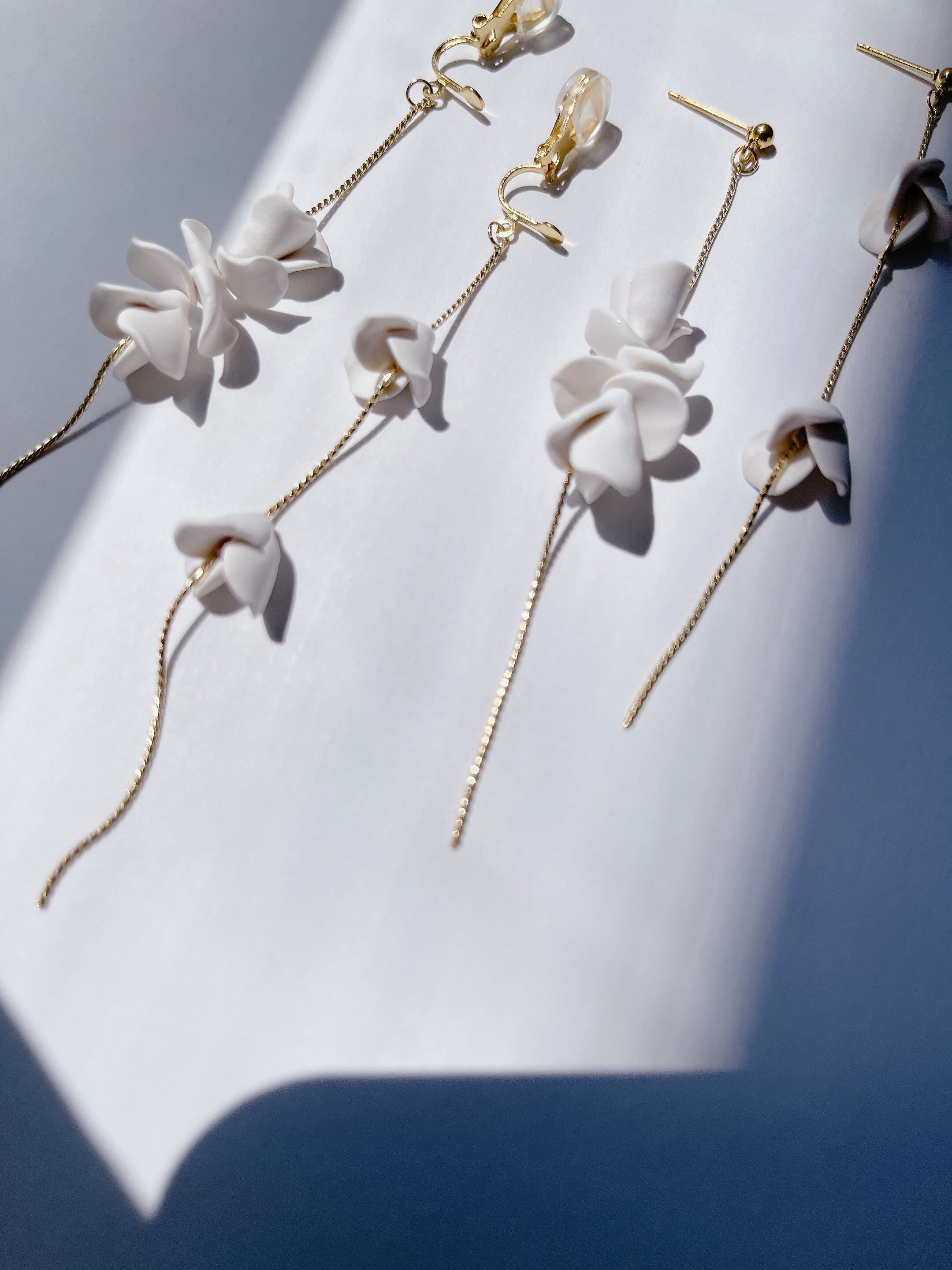 柔らかいオフホワイトカラーの花びらたちをあしらった